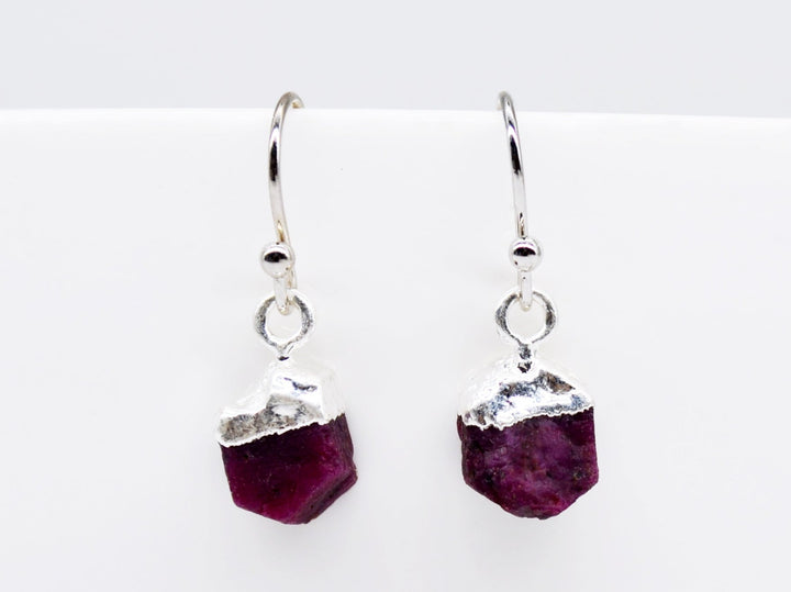These 100% natural Ruby birthstone earrings would be perfect for a May birthday gift, anniversary, graduation, or any occasion. The ruby pendants are genuine natural raw stones and measure approx. 7-10mm. Please note that because the stones are natural, each one will vary in shape, color, and size. The top of the stones are electroplated in copper and then plated with 18k gold, rose gold, and sterling silver. You can add a personalized leaf to each earring too.