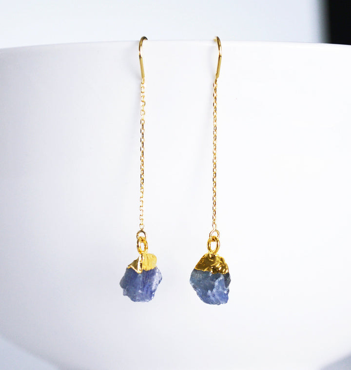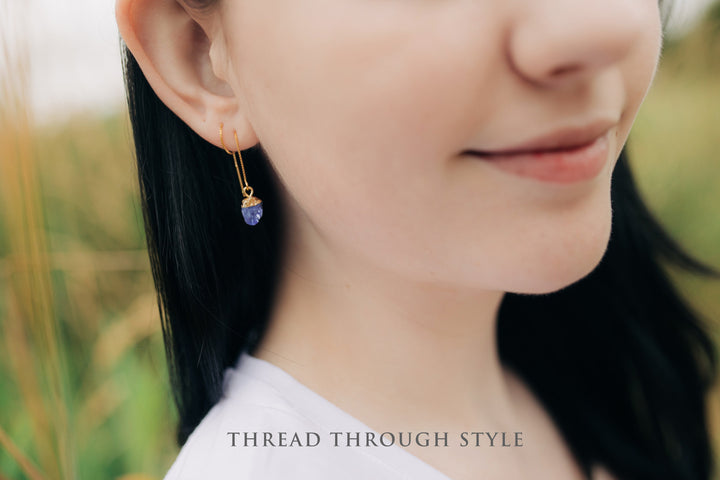 Raw Tanzanite Threader Earrings, Tanzanite Birthstone, December Birthday Gift
