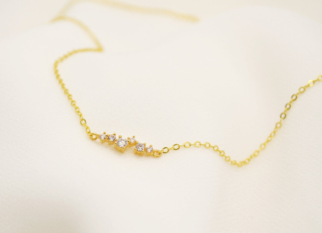 Dainty CZ Diamond Cluster Necklace, Layering Necklace, Bridesmaid Gift, Minimalist Necklace, Gift for Her, In Gold, Rose Gold and Silver