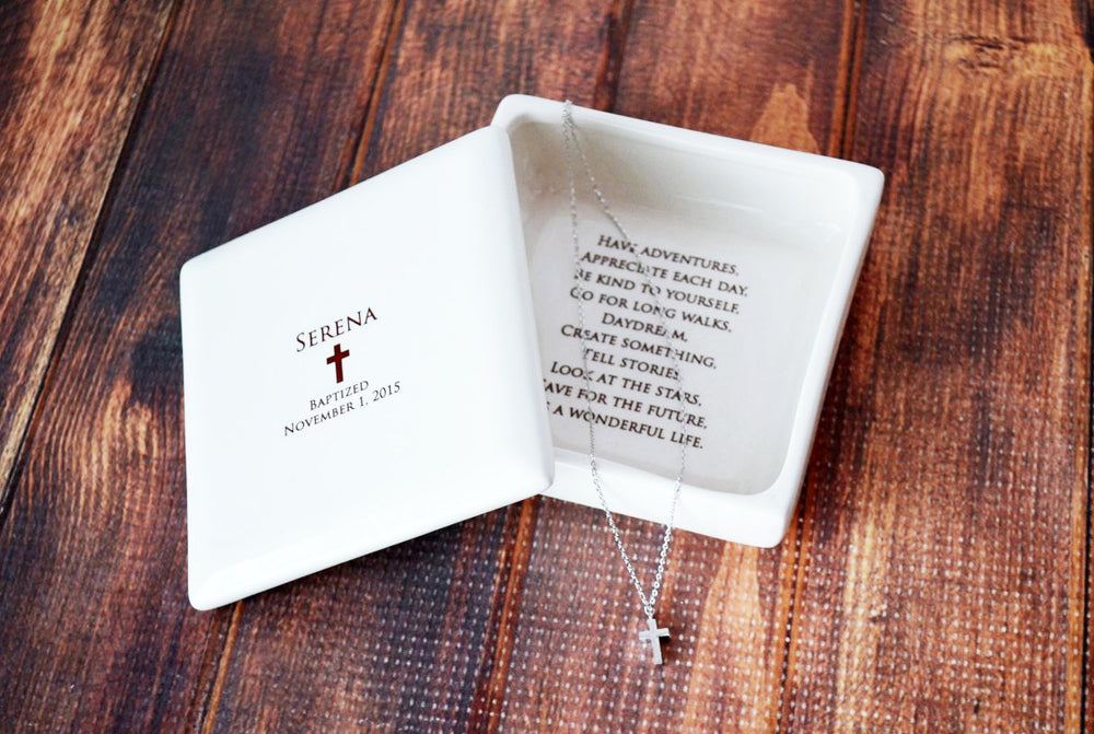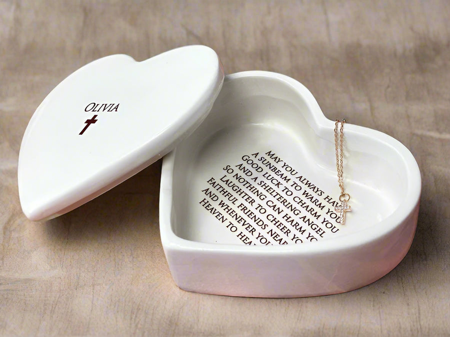 Celebrate Milestones of Faith with Susabella's Keepsake Gifts. Mark a special occasion in a young person's spiritual journey with a thoughtful custom gift from Susabella. Our handcrafted collection offers beautiful keepsakes for Baptism, Holy Communion, and Confirmation. From personalized platters and keepsake boxes to charming jewelry boxes, piggy banks, and jewelry, find a meaningful present that celebrates their faith and creates a lasting memory.