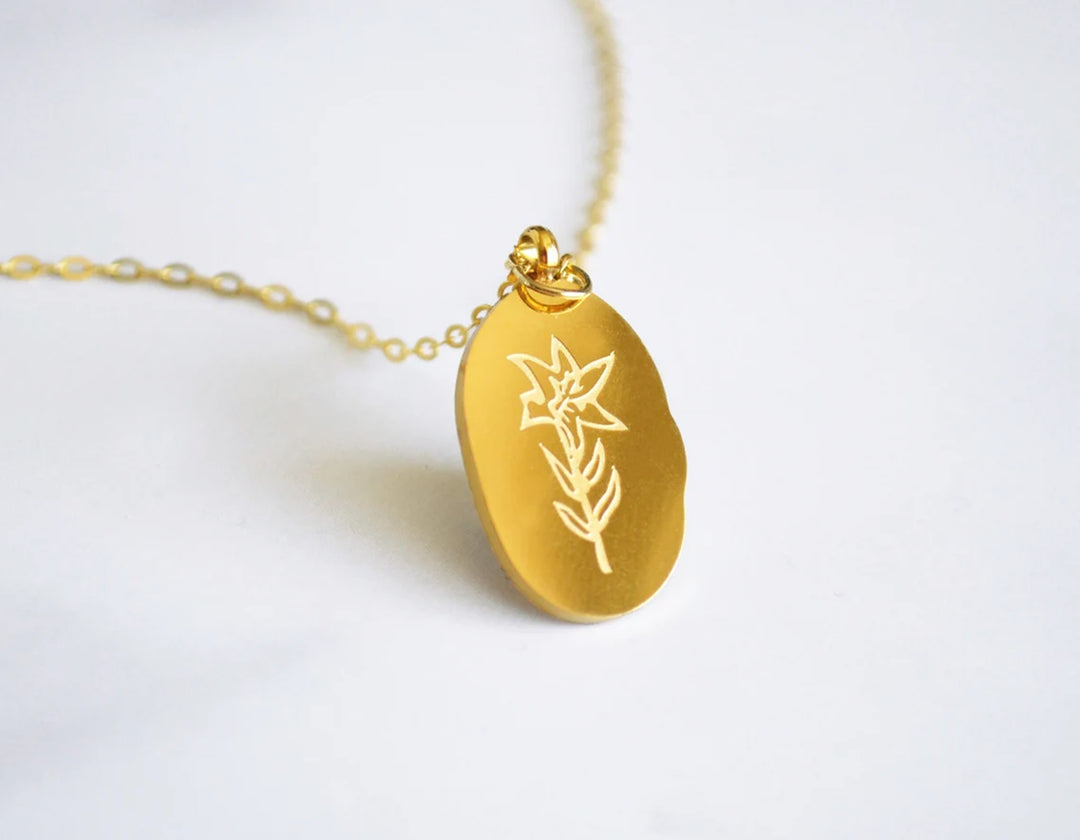 This beautiful December Poinsettia birth flower necklace would be a perfect gift for a Mom, Grandma, Aunt, friend, or any loved one. It's a perfect way to celebrate a family. The back of the pendant has the month and flower type engraved. You can add up to 4 birth flower pendants and birthstones. These are also available without a birthstone. It can be made with a silver or gold plated chain or a sterling silver, or 18k gold-filled chain and is available in 16, 18 or 20 inches (please contact us if you'd like it shorter or longer). They are high quality, dainty, and very pretty - the perfect delicate necklace for everyday wear. The birth flower pendant measures 11 X 20 mm (including the loop), and is made of stainless steel so it is hypoallergenic and won't tarnish. Please include the birthstone(s) in the personalization section. You can choose the necklace finish and month when checking out.
