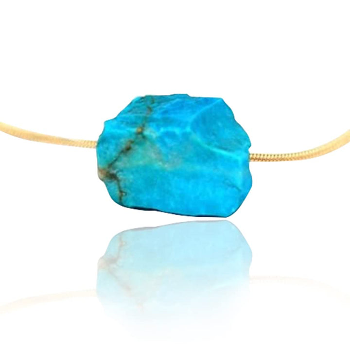 This 100% natural turquoise raw stone necklace would be a perfect gift for a December birthday or for anyone who loves this stone. This is a great layering necklace! Turquoise represents wisdom, tranquility, protection, good fortune, and hope. Please note that because these stones are natural, each one is unique in color, shape, and size. The stones range from light to medium blue or greenish-blue. If you have a certain preference please leave it in the notes section when checking out.