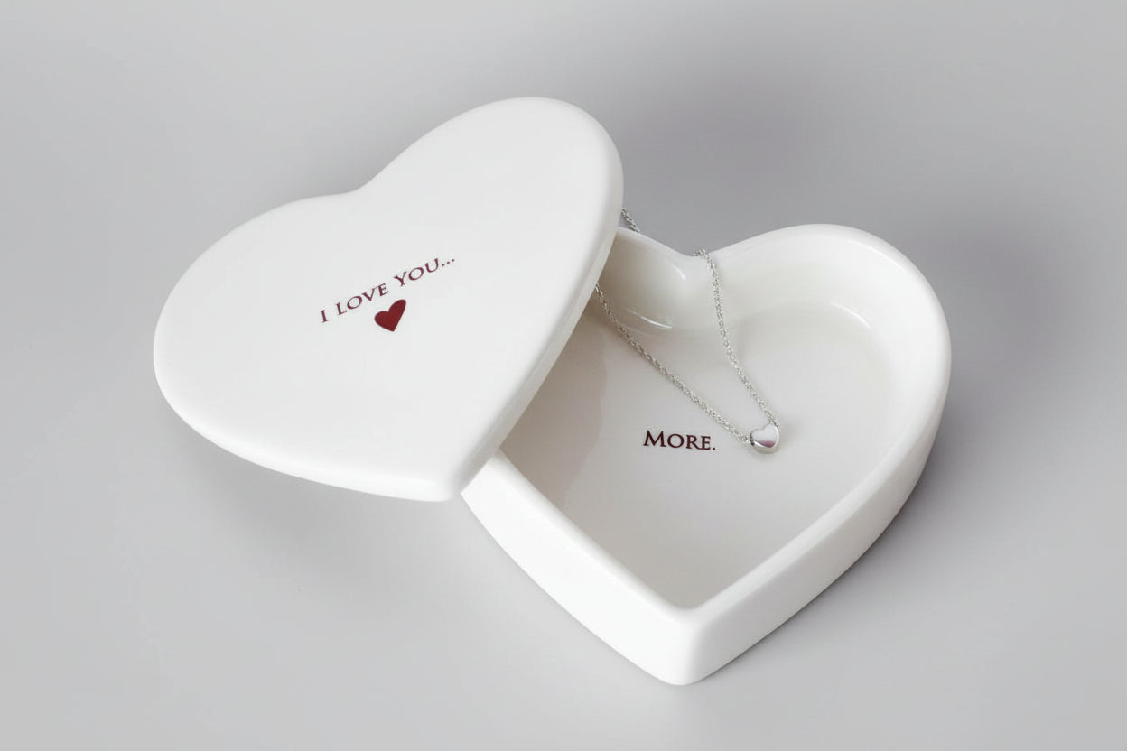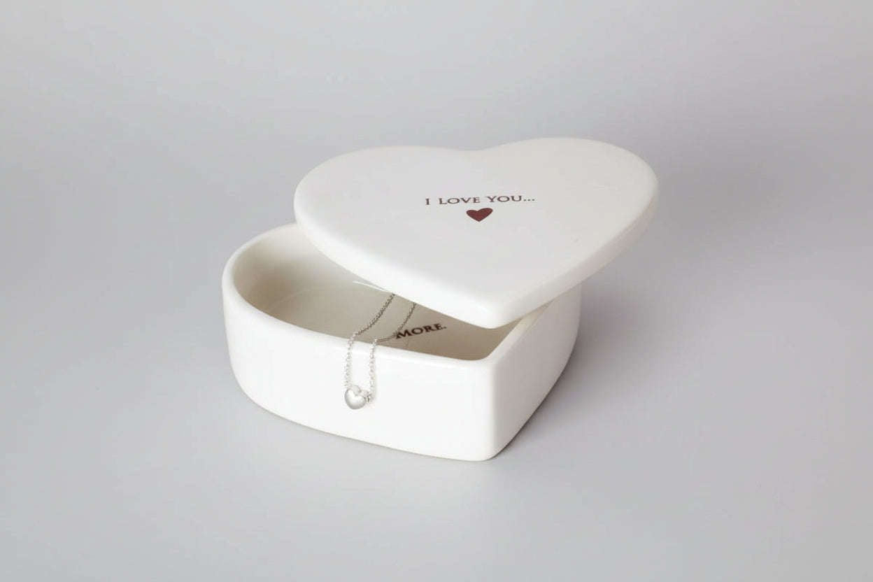 This lovely keepsake box would be a perfect Valentine's Day gift and one that could be enjoyed all year around. It's made of earthenware clay and has 'I love you..' printed on the outside. The inside reads: 'more.'