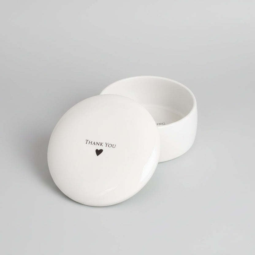 This lovely keepsake box would be a perfect Thank You gift and could be enjoyed for years to come. It's made of earthenware clay and has 'Thank You' printed on it with a little heart underneath. The inside of the box can include a personalized message. The box measures 4.25" x 2.5".