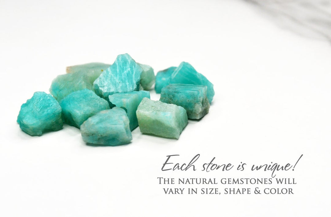 This 100% natural raw Amazonite necklace would be a perfect gift for anyone who loves this stone and it's a great layering necklace! Amazonite is associated with money, luck, and overall success. It's is also said to soothe anxiety and bring clarity. Please note that because these stones are natural, each one is unique in color, shape, and size. The stone colors range from soft milky green to blue-green or turquoise with brown or gray inclusions. If you have a certain preference please leave it in the notes section when checking out.