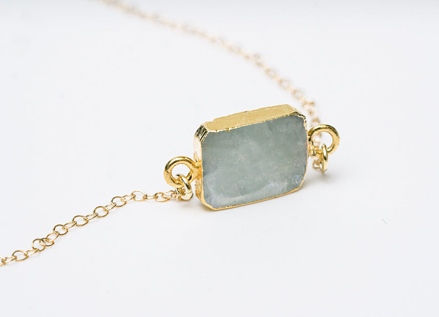 Our beautiful natural aquamarine necklace is a must-have piece for March birthdays or anyone who appreciates the beauty of birthstone jewelry! This necklace features a genuine aquamarine gemstone slice, showcasing its unique natural beauty. Handmade with love, this one-of-a-kind jewelry set is truly special and makes a perfect gift for her. The striking combination of the gemstone and expert craftsmanship ensures that this necklace will be a perfect addition to any collection.