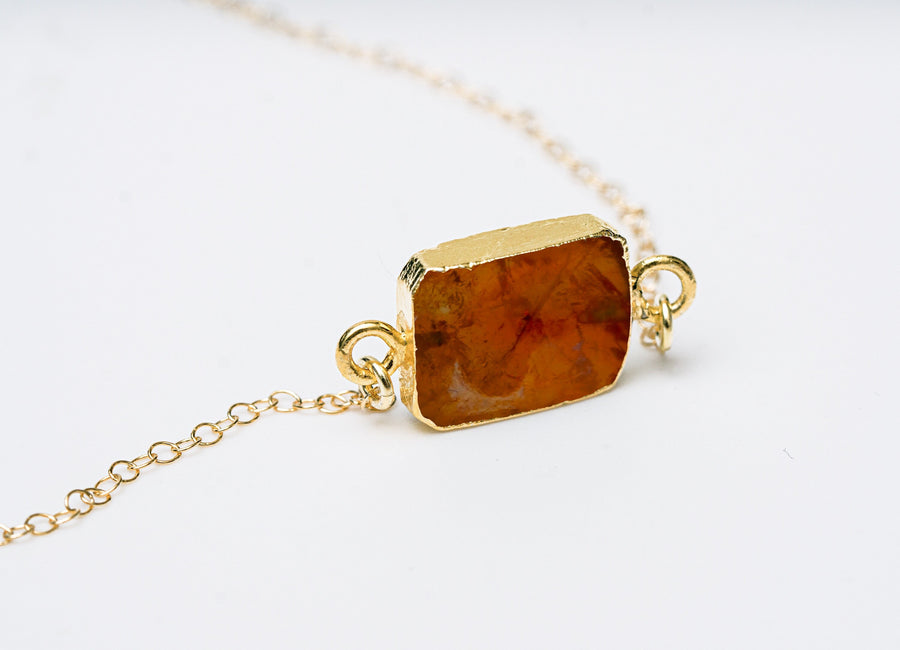 Our beautiful natural citrine necklace is a must-have piece for November birthdays or anyone who appreciates the beauty of birthstone jewelry! This necklace features a genuine citrine gemstone slice, showcasing its unique natural beauty. Handmade with love, this one-of-a-kind jewelry set is truly special and makes a perfect gift for her. The striking combination of the gemstone and expert craftsmanship ensures that this necklace will be a perfect addition to any collection.