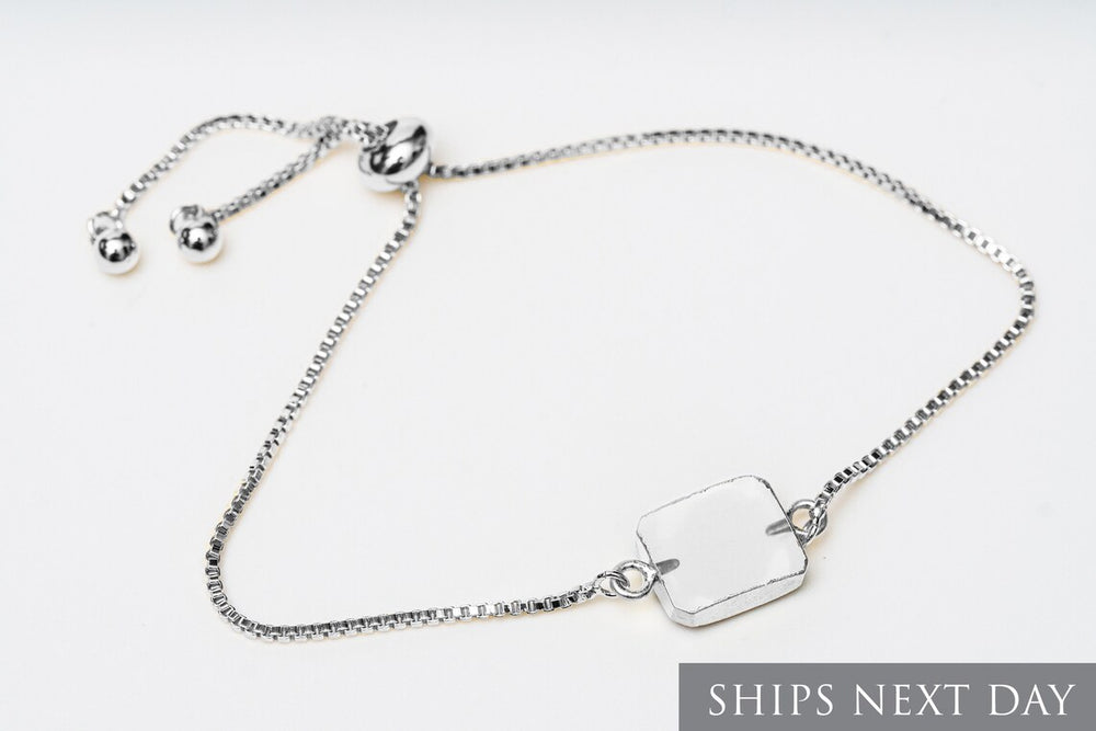 Our beautiful clear quartz bracelet is a must-have piece for April birthdays or anyone who appreciates the beauty of birthstone jewelry. This bracelet features a genuine clear quartz gemstone slice, showcasing its unique natural beauty. Handmade with love, this one-of-a-kind bracelet is truly special and makes a perfect gift for her. The striking combination of the clear quartz gemstone and expert craftsmanship ensures that this bracelet will be a perfect addition to any collection.