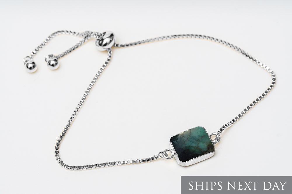 Our beautiful emerald bracelet is a must-have piece for a May birthday for anyone who appreciates the beauty of birthstone jewelry. This bracelet features a genuine emerald gemstone slice, showcasing its unique natural beauty. Handmade with love, this one-of-a-kind bracelet is truly special and makes a perfect gift for her. The striking combination of the emerald gemstone and expert craftsmanship ensures that this bracelet will be a perfect addition to any collection.