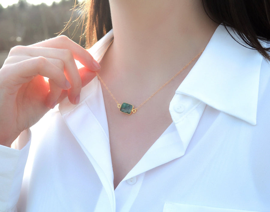 This natural gemstone slice birthstone necklace would be a perfect birthday gift for a friend, bridesmaid, wife, mom, or anyone who loves natural gemstones. The stones measure approximately 12mm to 17mm and are framed with sterling silver or gold vermeil. Since these are genuine stones the size might vary slightly. This necklace is also available as a set! You can select the earring option when checking out. The stone shown in the model photos is emerald.