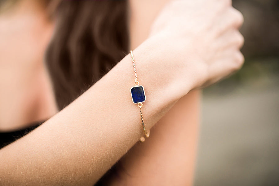Our beautiful Lapis Lazuli bracelet is a must-have piece for September birthdays or anyone who appreciates the beauty of birthstone jewelry. This bracelet features a genuine lapis lazuli gemstone slice, showcasing its unique natural beauty. Handmade with love, this one-of-a-kind bracelet is truly special and makes a perfect gift for her. The striking combination of the lapis lazuli gemstone and expert craftsmanship ensures that this bracelet will be a perfect addition to any collection.