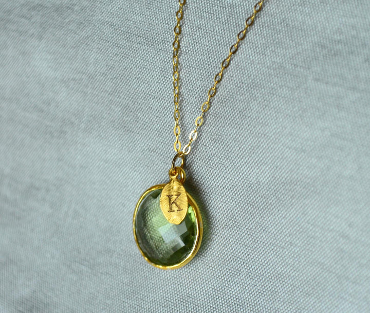 The leaf charm is subtly stamped with an initial. The necklace can be purchased without the leaf or you can add up to 4. Please include the initial(s) and birthstone in the personalization section. We can stamp 1 initial per leaf. If you would like a blank leaf (w/o an initial), please add "Blank". You can choose the leaf and necklace finish when checking out.