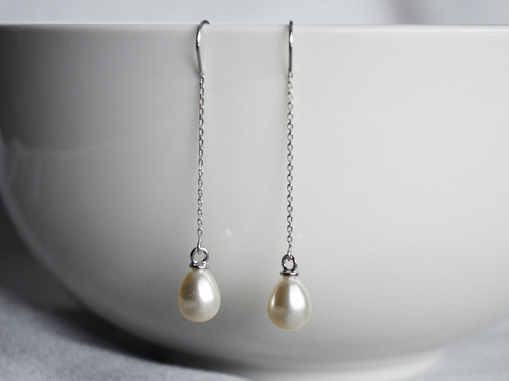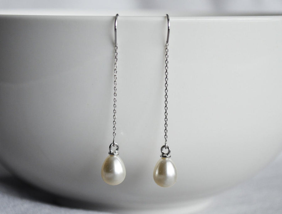These beautiful faux pearl earrings are perfect for Mother's Day, a wedding, birthday, anniversary, graduation or for any occasion. These earrings have a slight drop shape and are a gorgeous white shade. The approximate size of the pearls is 8mm and the gold or silver plated earring threads are 45 mm. These earrings are so dainty and very pretty - perfect for everyday wear.